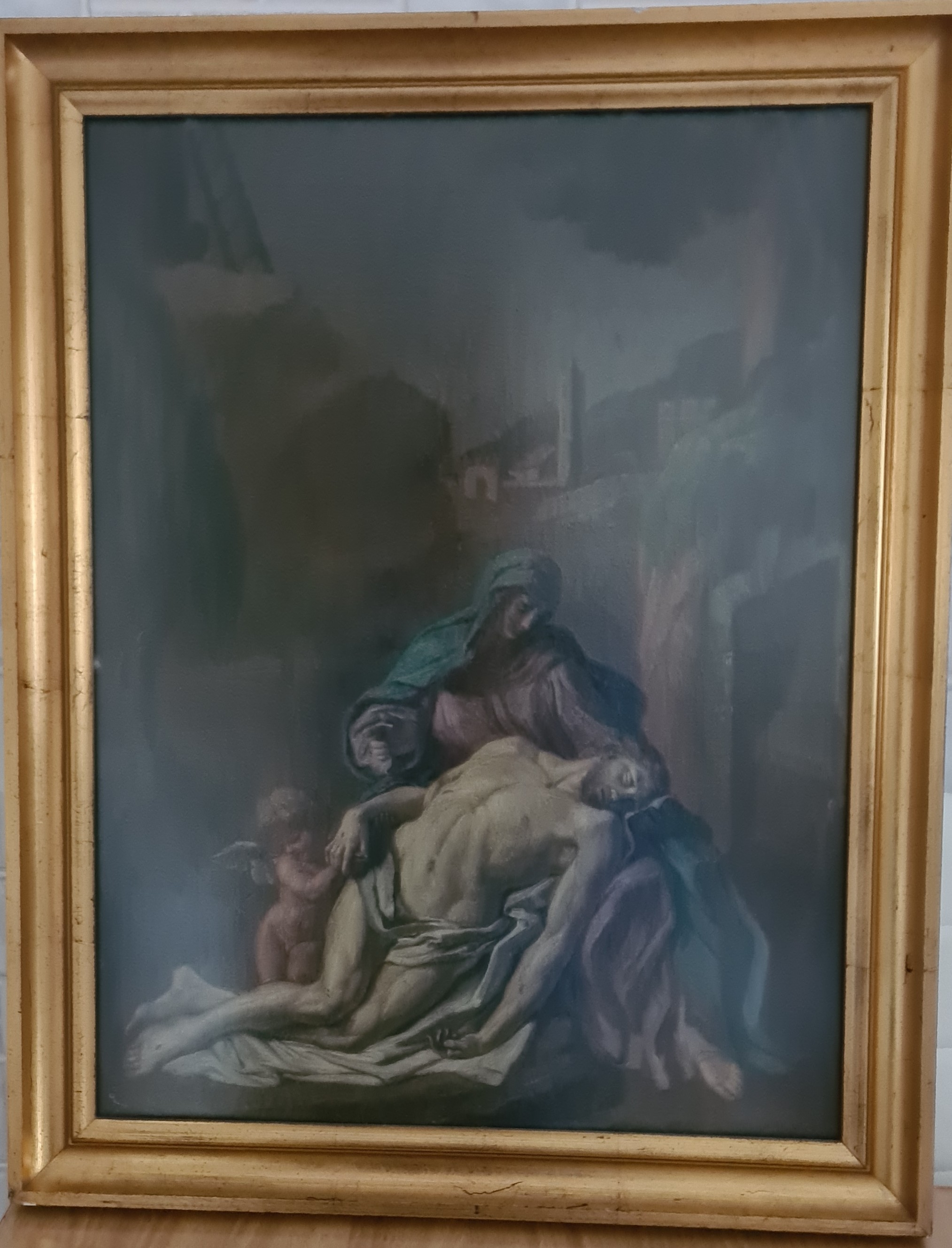 2. quadro della Pietà, di 48 cm x 60 cm (tela/pergamena applicata su tavola, del XIX secolo): offerta base: € 50